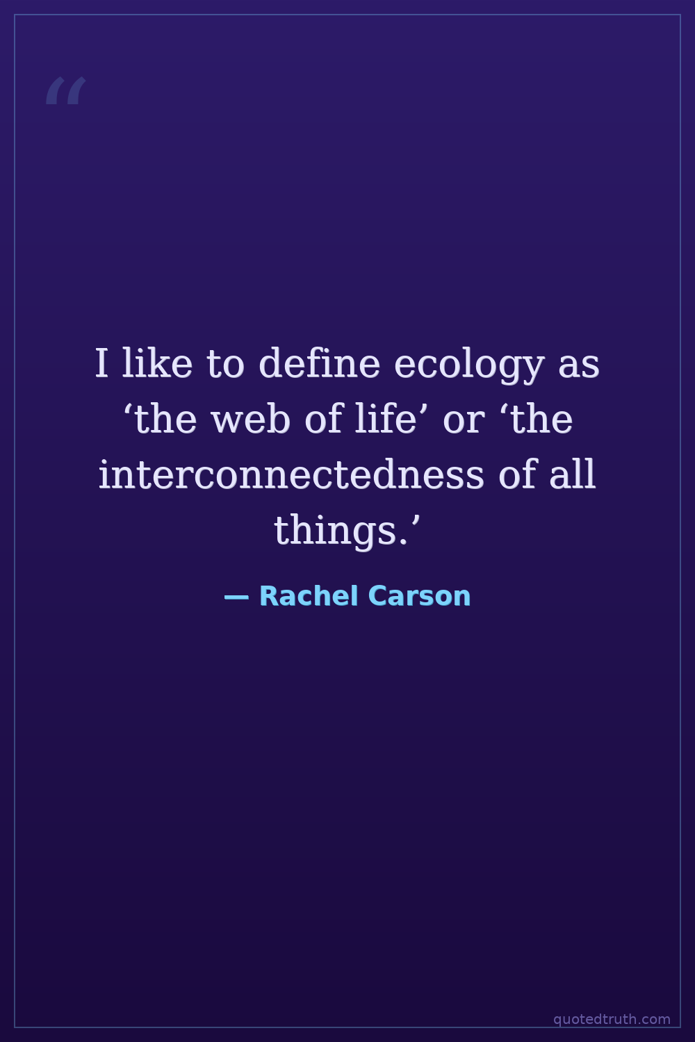 I like to define ecology as ‘the web of life’ or ‘the interconnectedness of all things.’