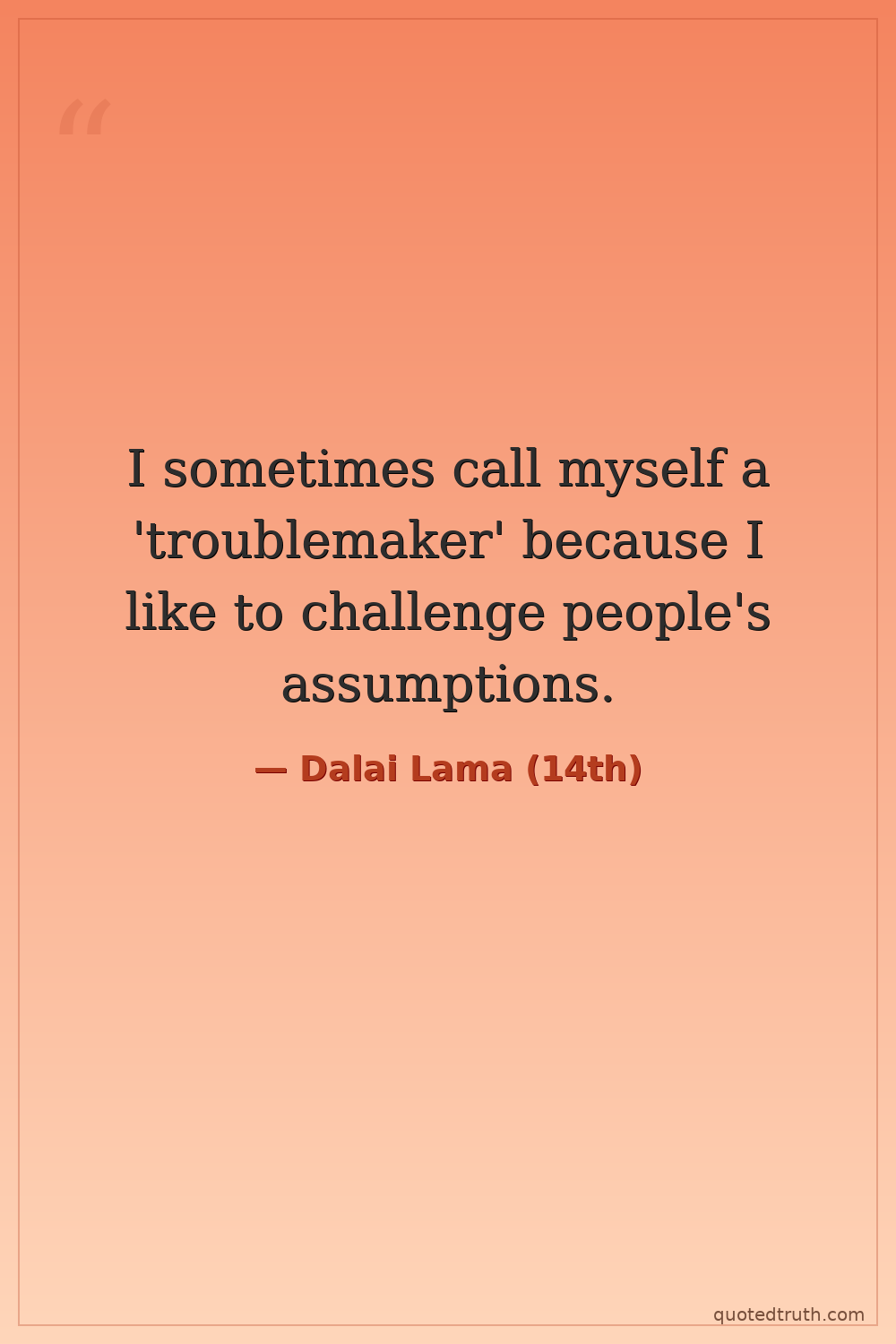 I sometimes call myself a 'troublemaker' because I like to challenge people's assumptions.