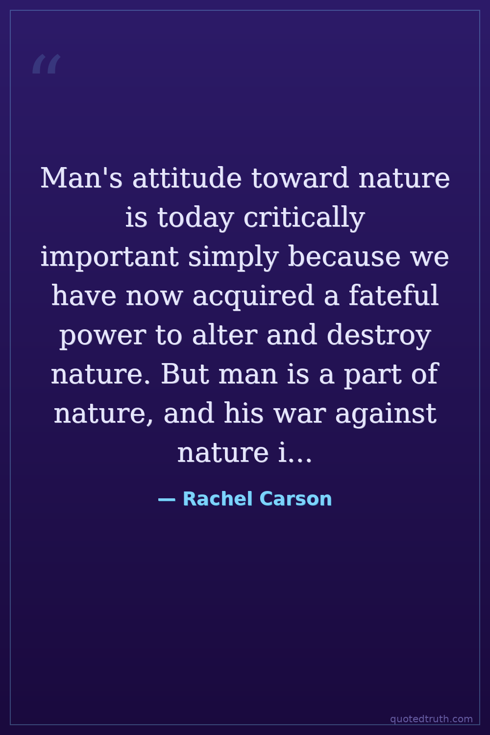 Man's attitude toward nature is today critically important simply because we have now acquired a fateful power to alter and destroy nature. But man is a part of nature, and his war against nature is inevitably a war against himself.