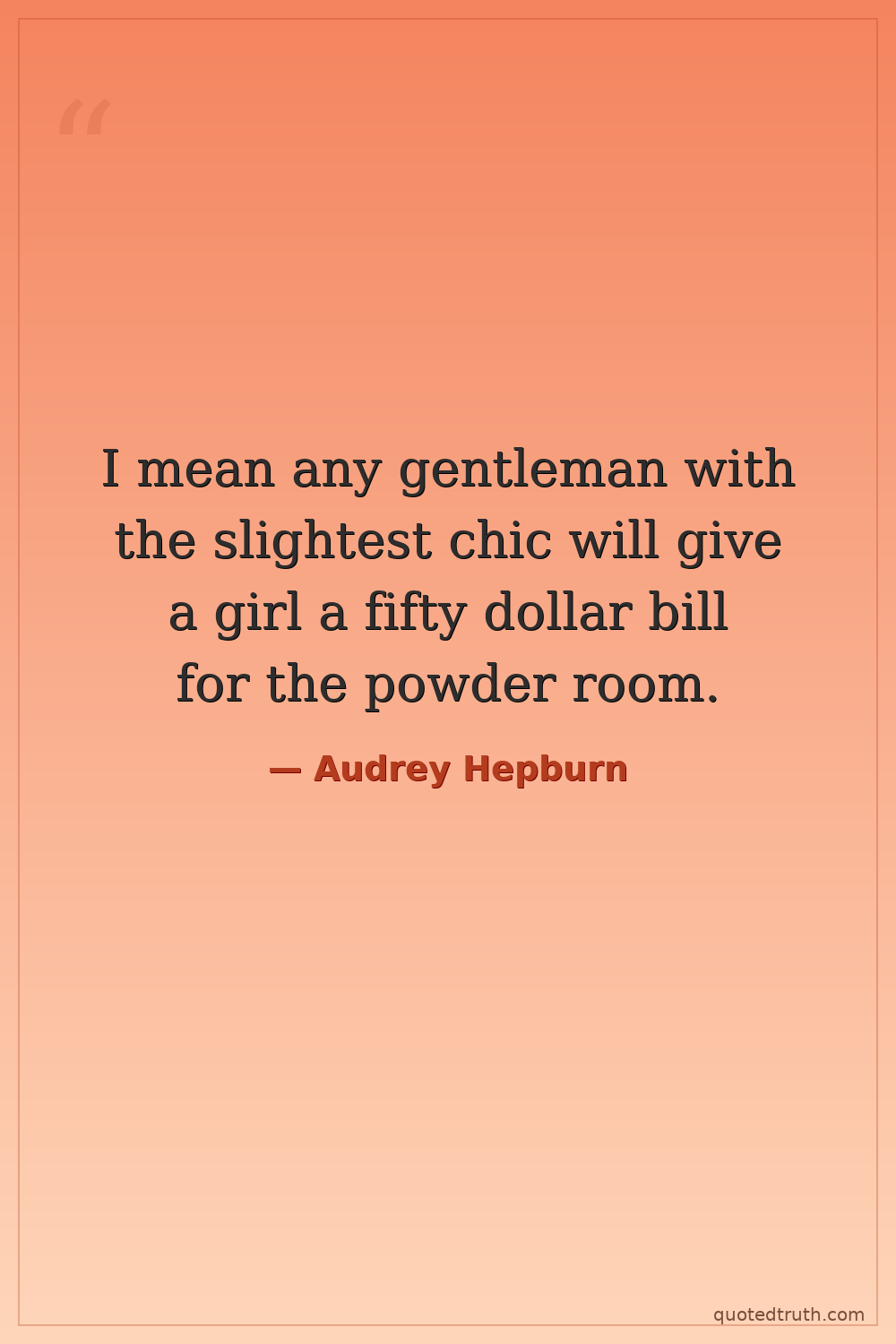 I mean any gentleman with the slightest chic will give a girl a fifty dollar bill for the powder room.