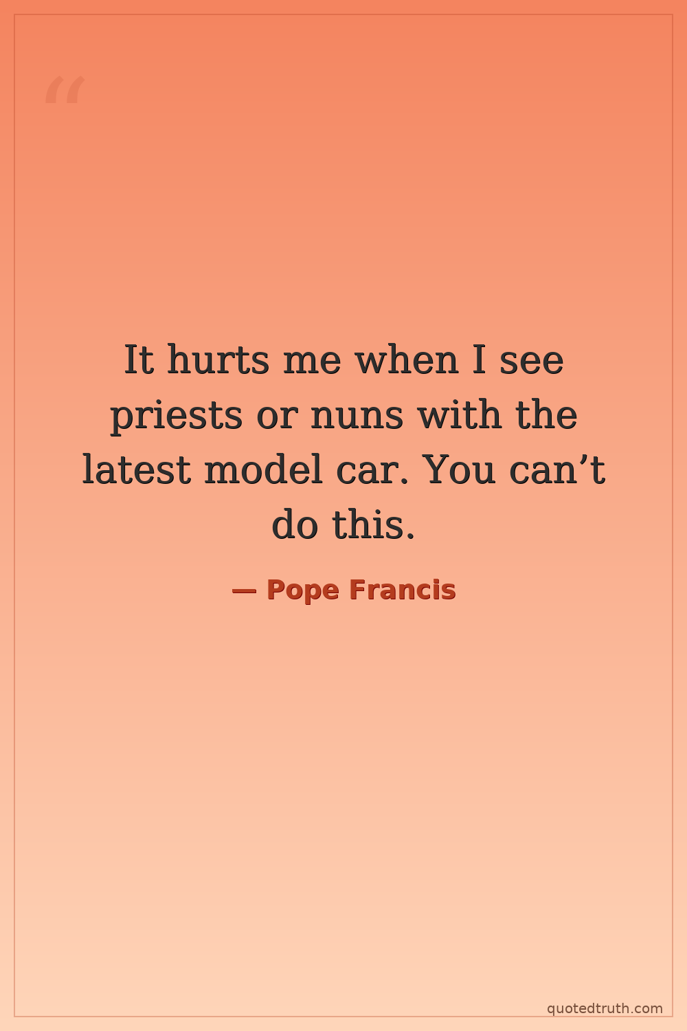 It hurts me when I see priests or nuns with the latest model car. You can’t do this.