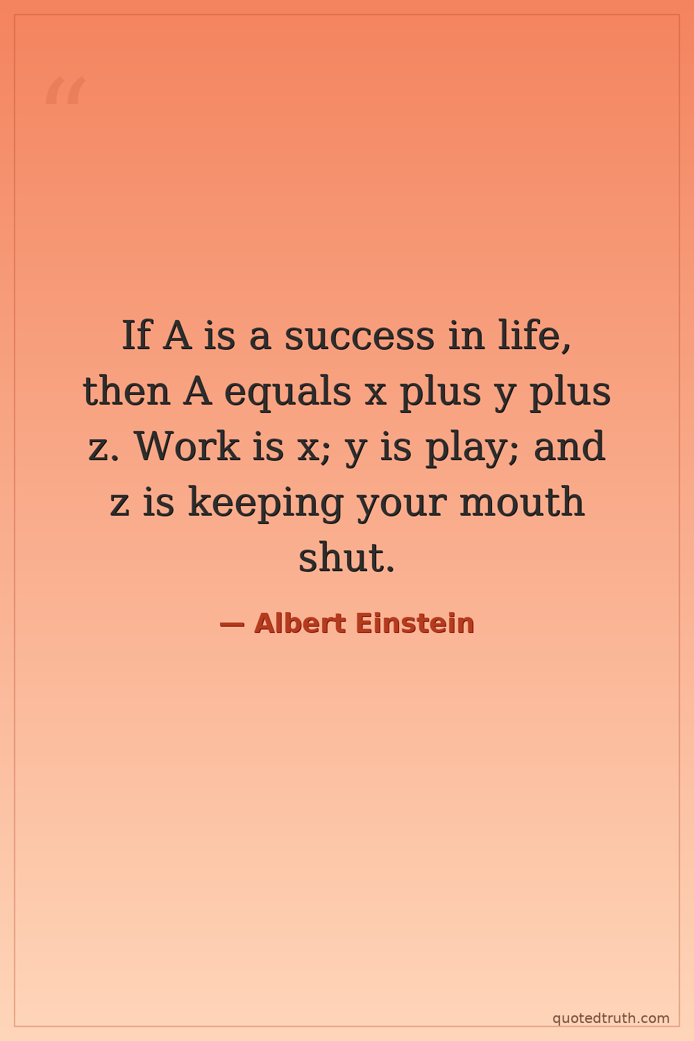 If A is a success in life, then A equals x plus y plus z. Work is x; y is play; and z is keeping your mouth shut.