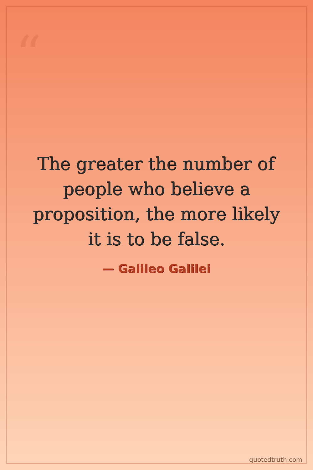 Humorous"The authority of a thousand is not worth the humble reasoning of a single individual who observes the facts."