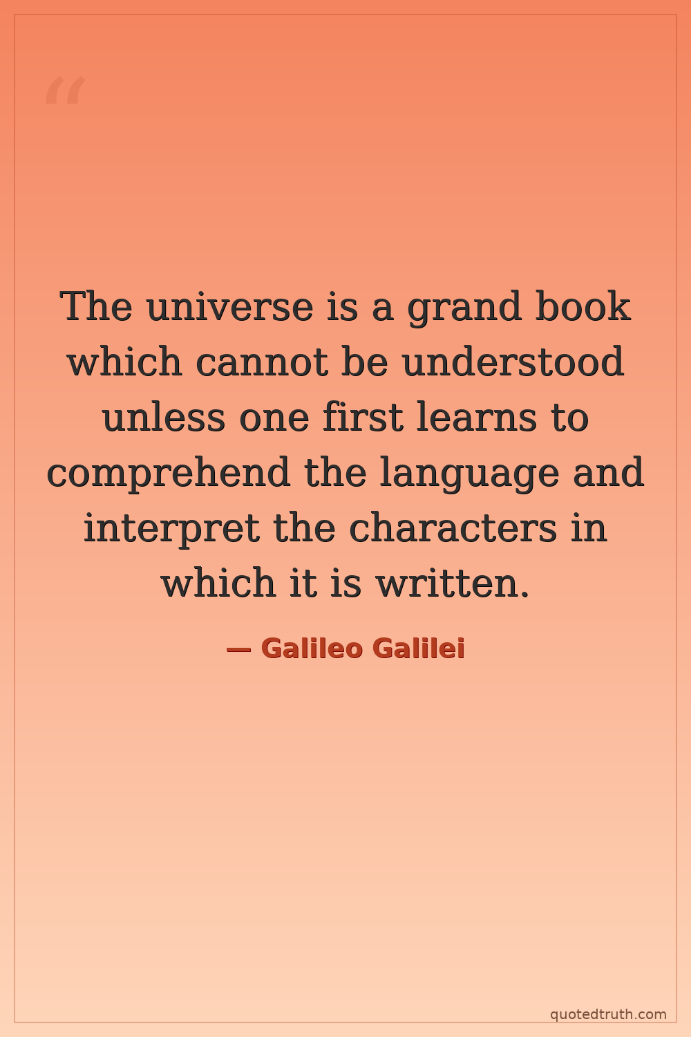 The universe is a grand book which cannot be understood unless one first learns to comprehend the language and interpret the characters in which it is written.