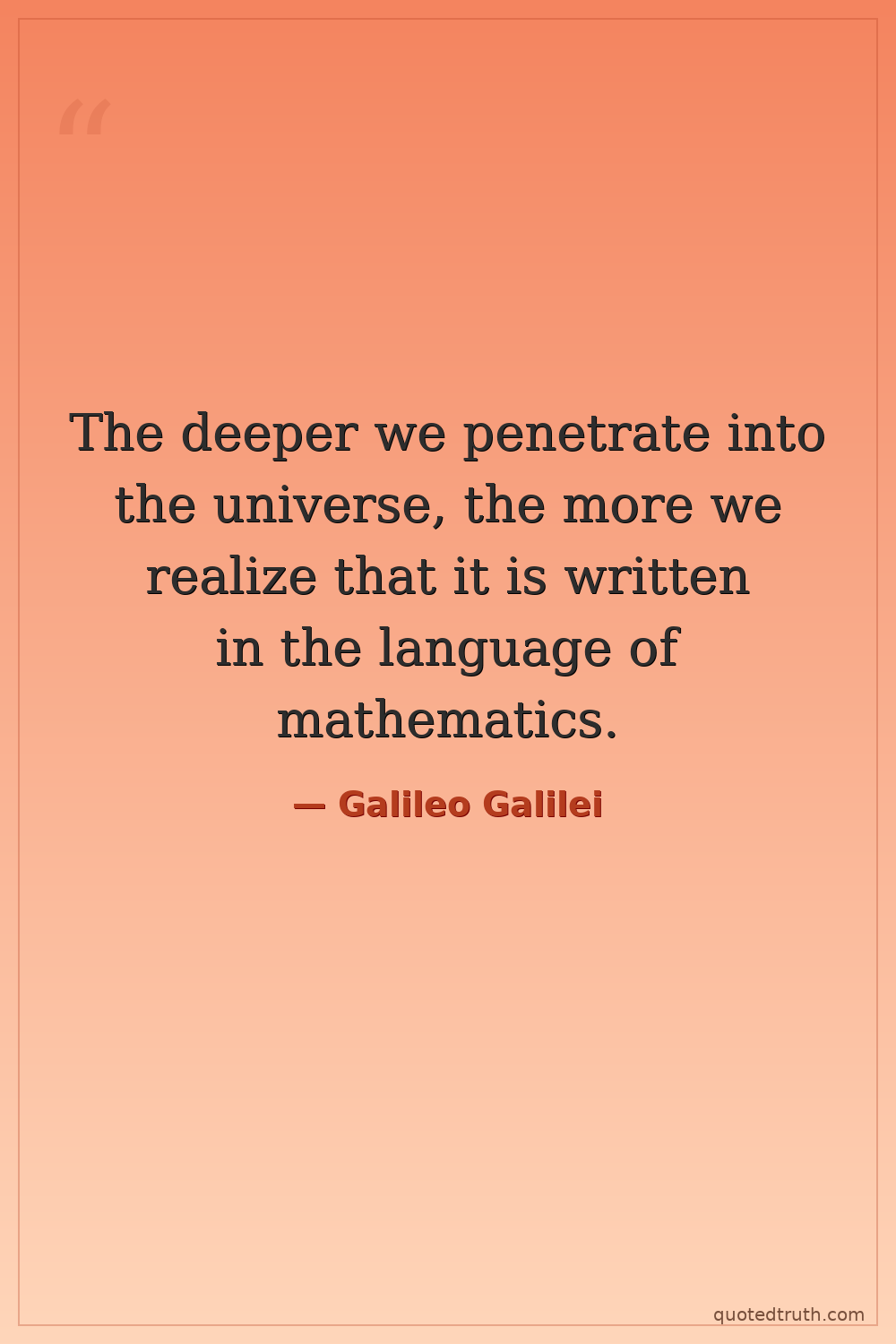 The deeper we penetrate into the universe, the more we realize that it is written in the language of mathematics.