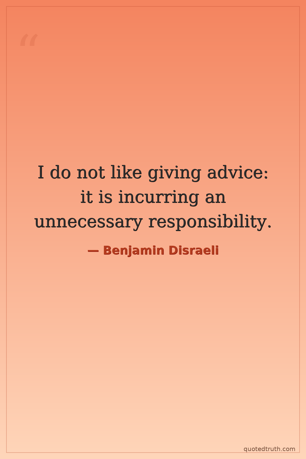 I do not like giving advice: it is incurring an unnecessary responsibility.
