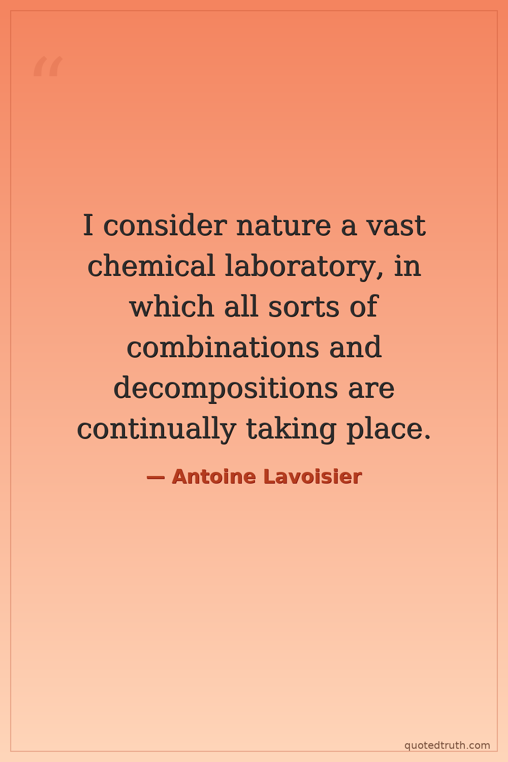 I consider nature a vast chemical laboratory, in which all sorts of combinations and decompositions are continually taking place.