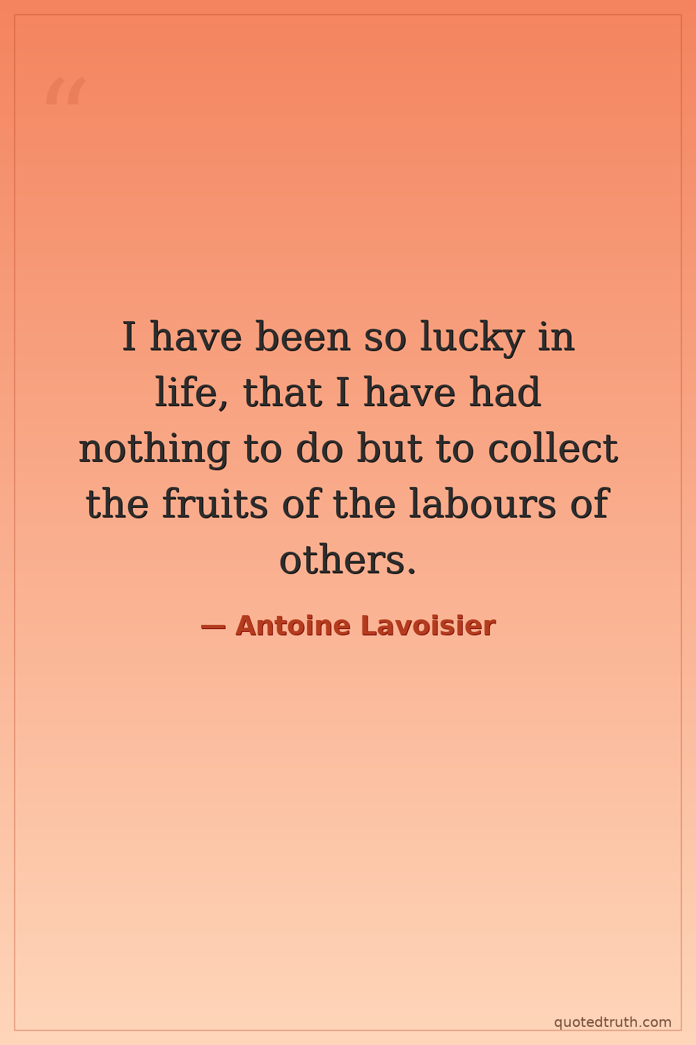 I have been so lucky in life, that I have had nothing to do but to collect the fruits of the labours of others.