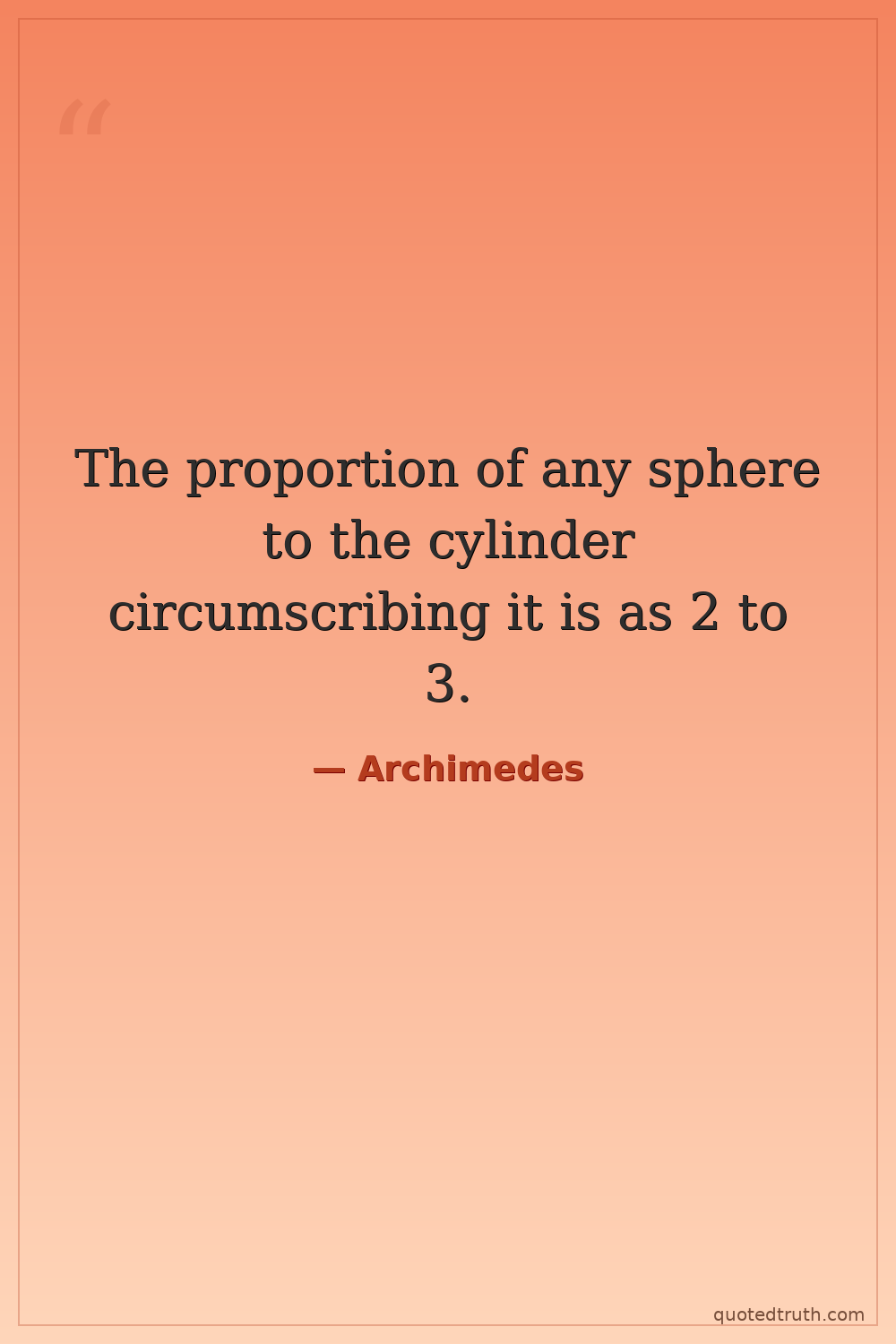 The proportion of any sphere to the cylinder circumscribing it is as 2 to 3.