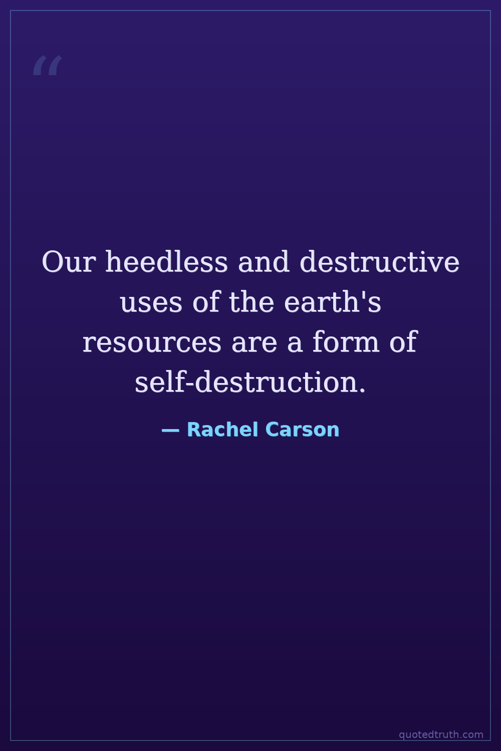 Our heedless and destructive uses of the earth's resources are a form of self-destruction.