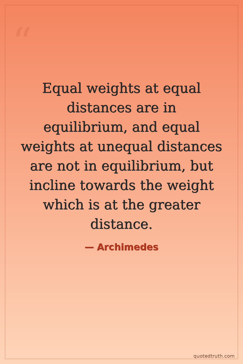 Equal weights at equal distances are in equilibrium, and equal weights at unequal distances are not in equilibrium, but incline towards the weight which is at the greater distance.