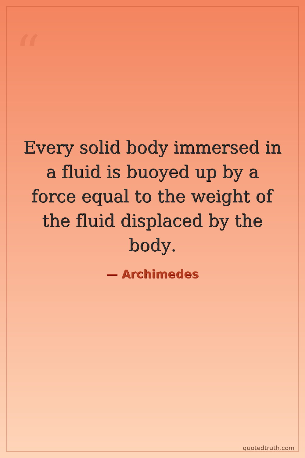 Every solid body immersed in a fluid is buoyed up by a force equal to the weight of the fluid displaced by the body.