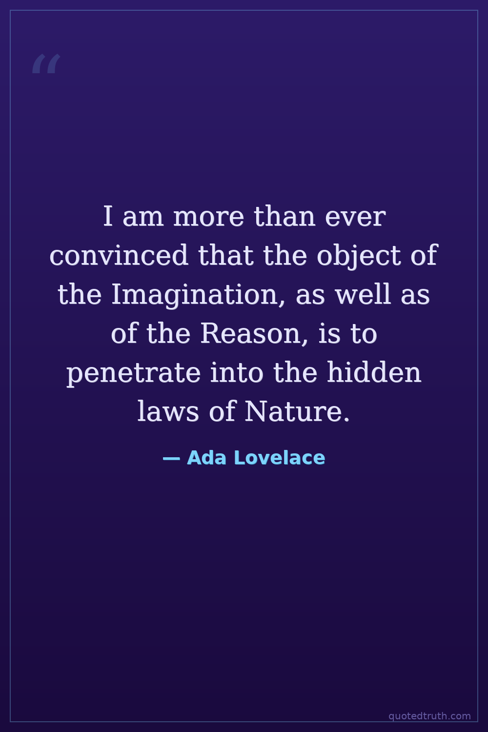I am more than ever convinced that the object of the Imagination, as well as of the Reason, is to penetrate into the hidden laws of Nature.