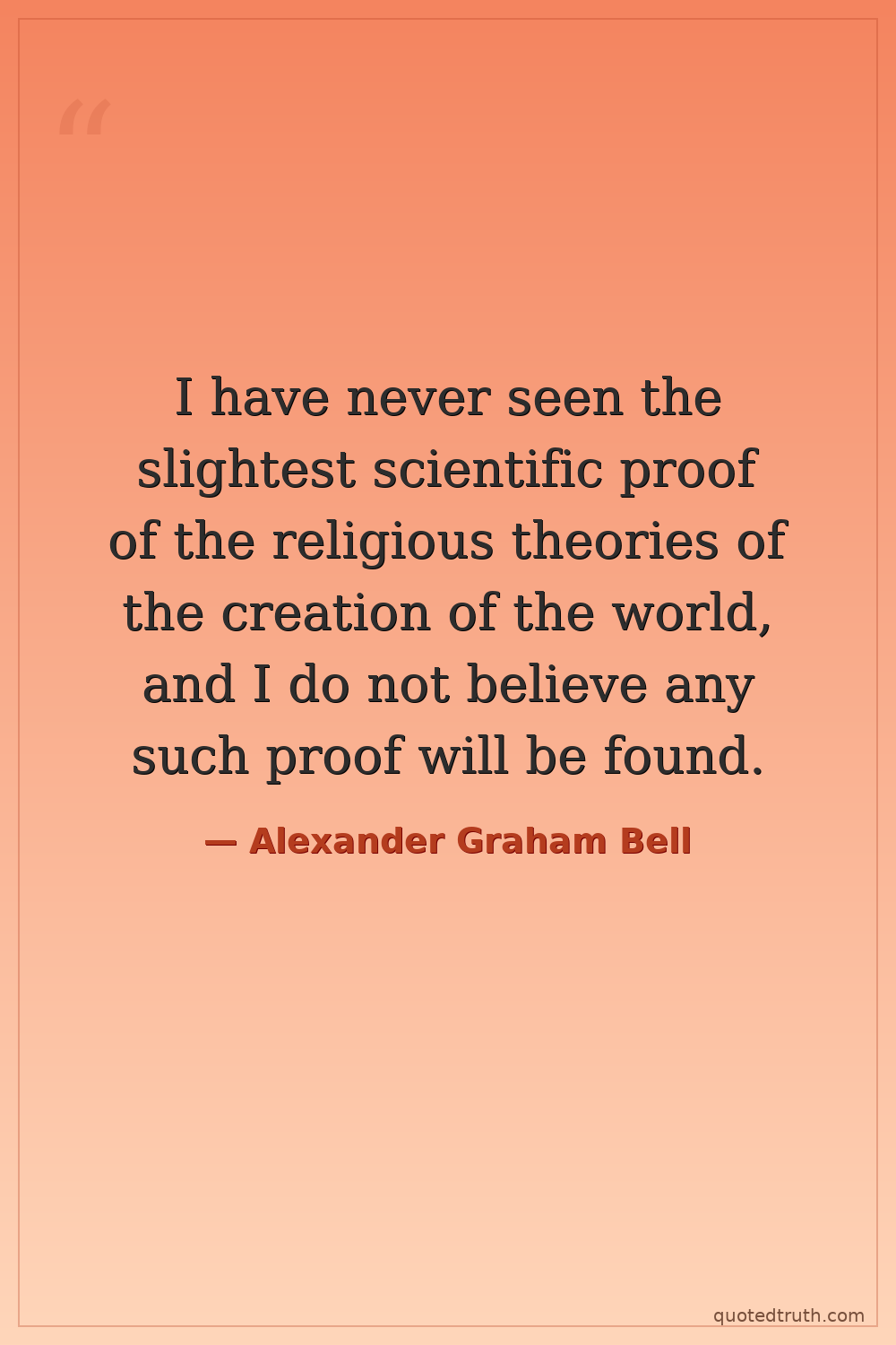I have never seen the slightest scientific proof of the religious theories of the creation of the world, and I do not believe any such proof will be found.
