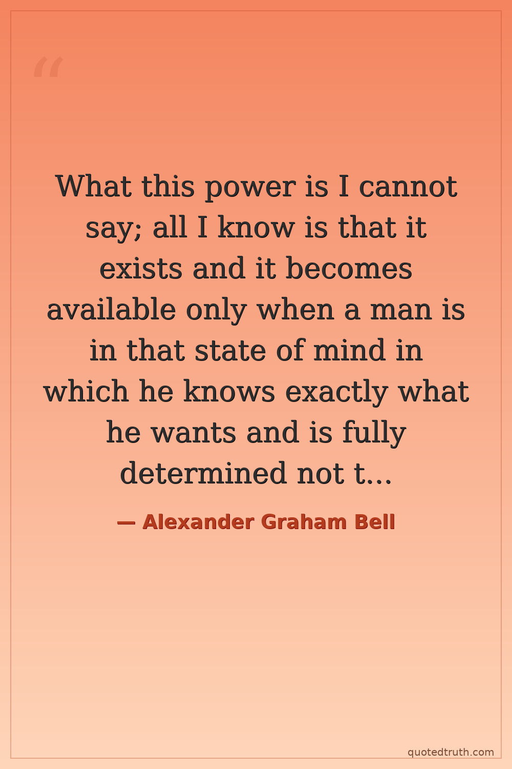 What this power is I cannot say; all I know is that it exists and it becomes available only when a man is in that state of mind in which he knows exactly what he wants and is fully determined not to give up until he finds it.