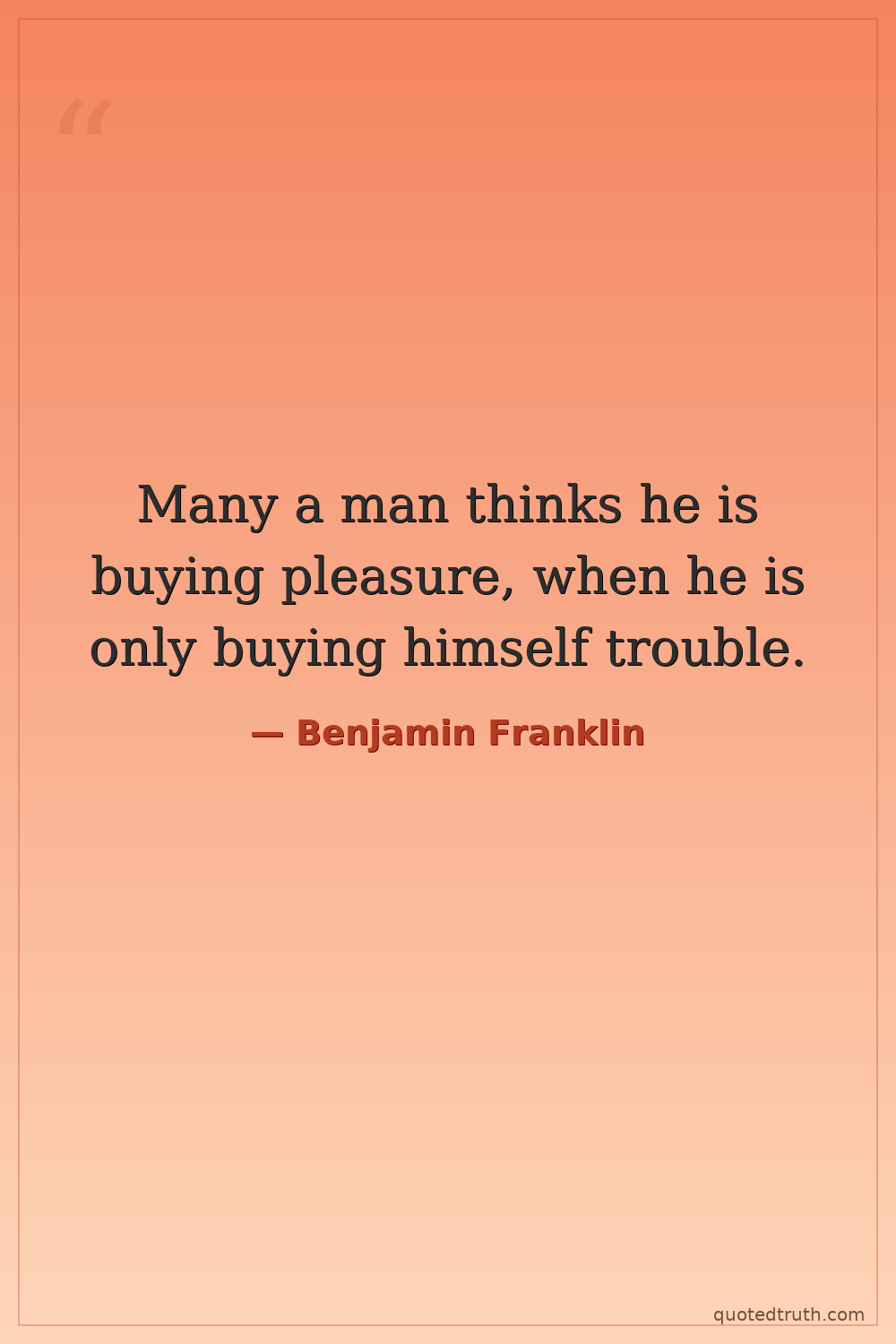 Many a man thinks he is buying pleasure, when he is only buying himself trouble.