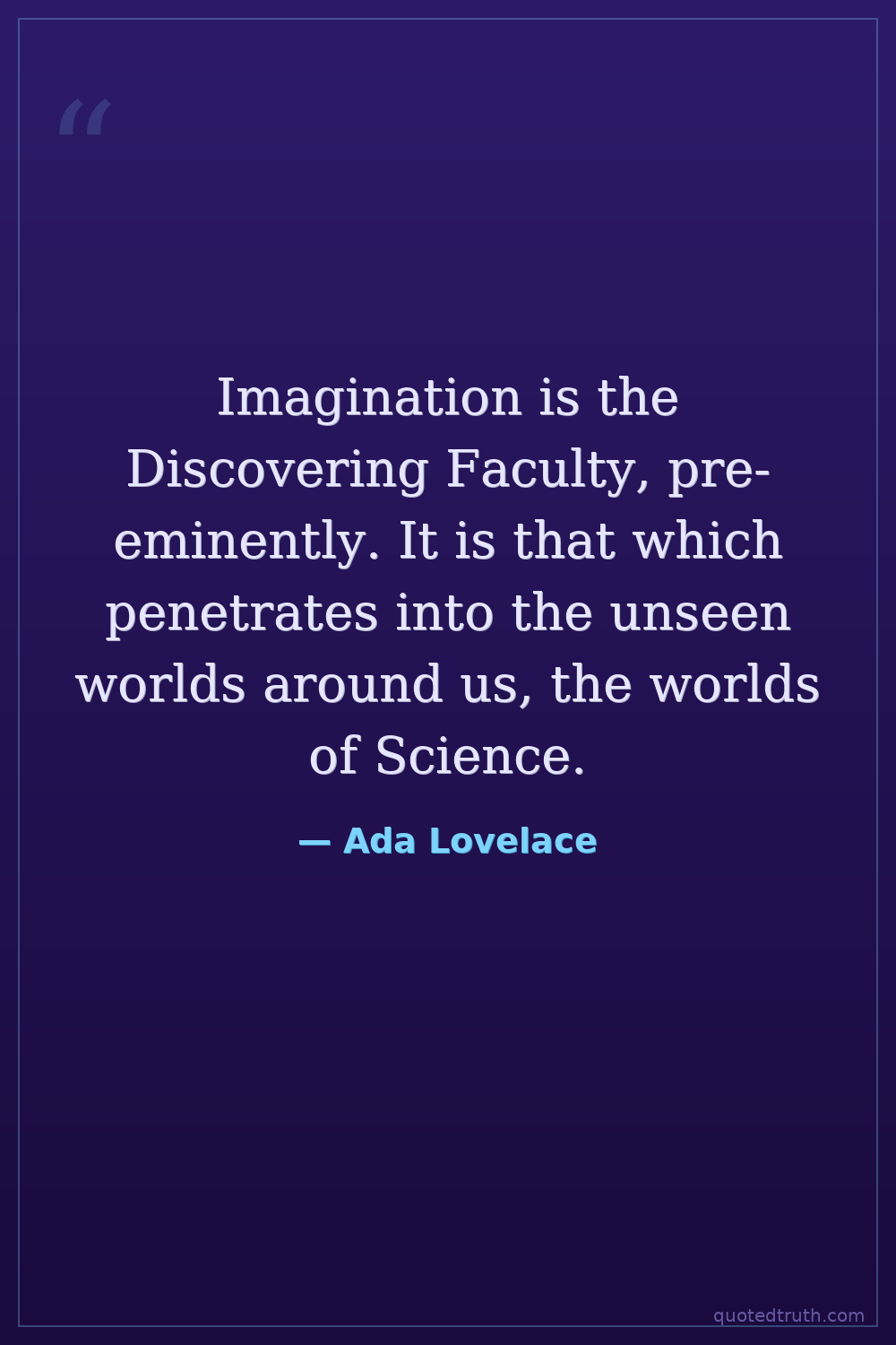 Imagination is the Discovering Faculty, pre-eminently. It is that which penetrates into the unseen worlds around us, the worlds of Science.