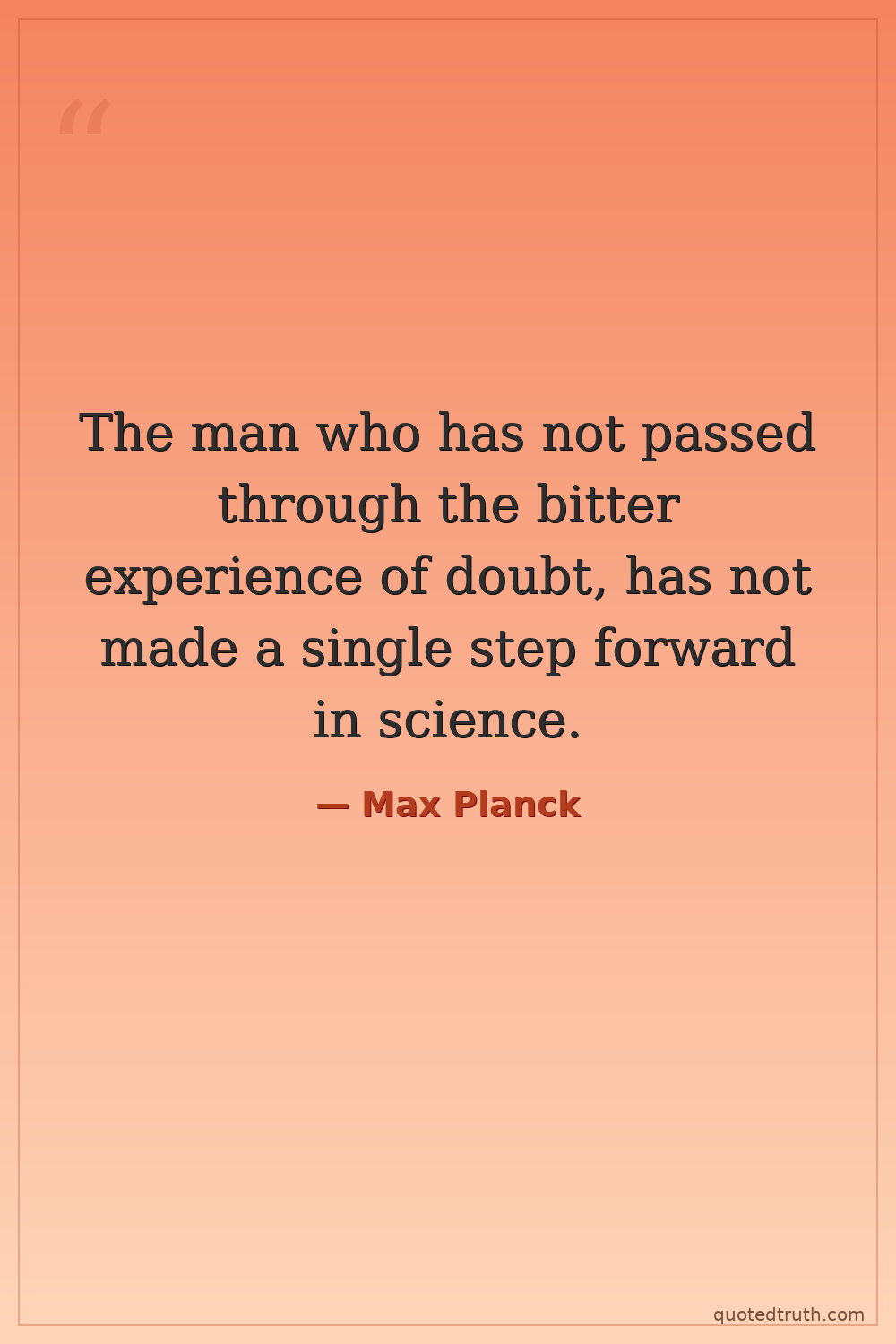 The man who has not passed through the bitter experience of doubt, has not made a single step forward in science.