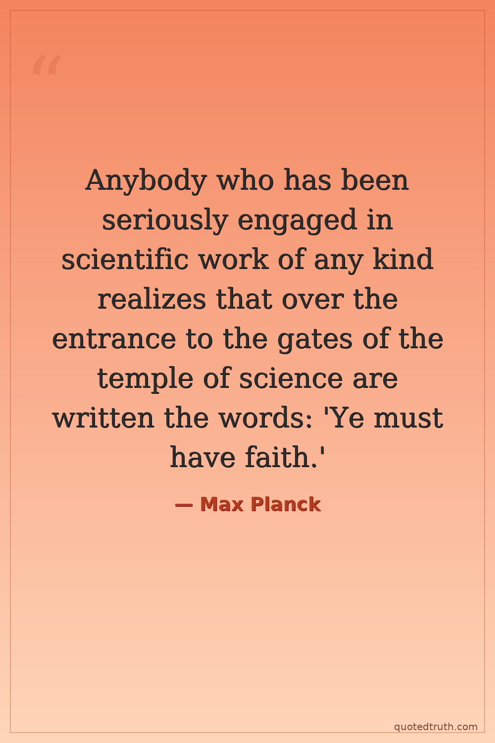 Anybody who has been seriously engaged in scientific work of any kind realizes that over the entrance to the gates of the temple of science are written the words: 'Ye must have faith.'