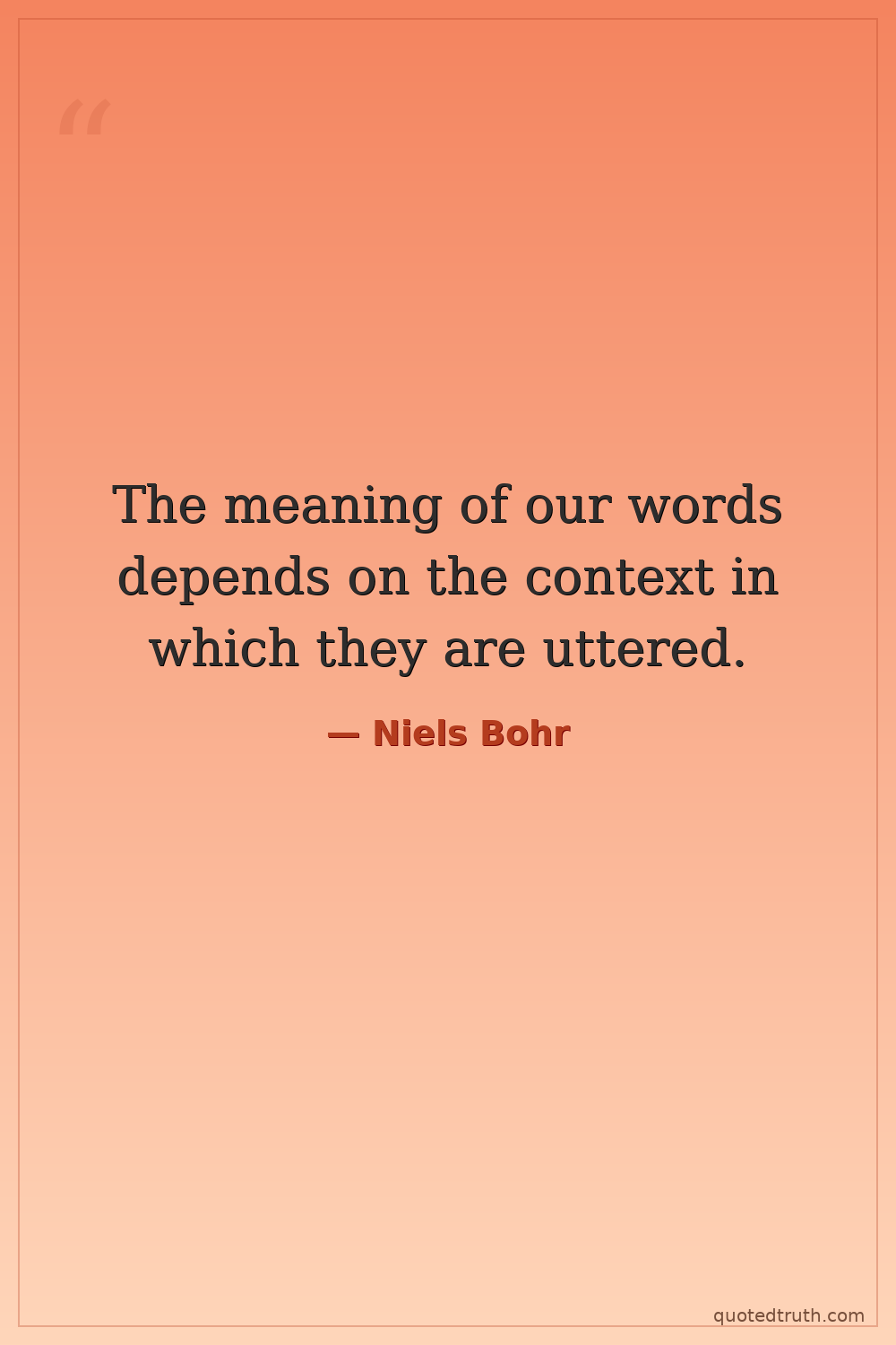 The meaning of our words depends on the context in which they are uttered.