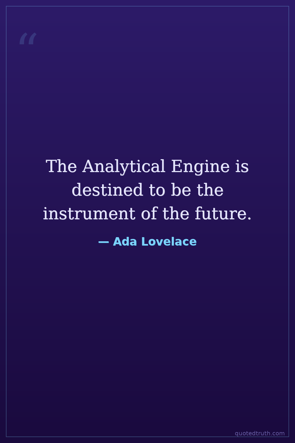 The Analytical Engine is destined to be the instrument of the future.