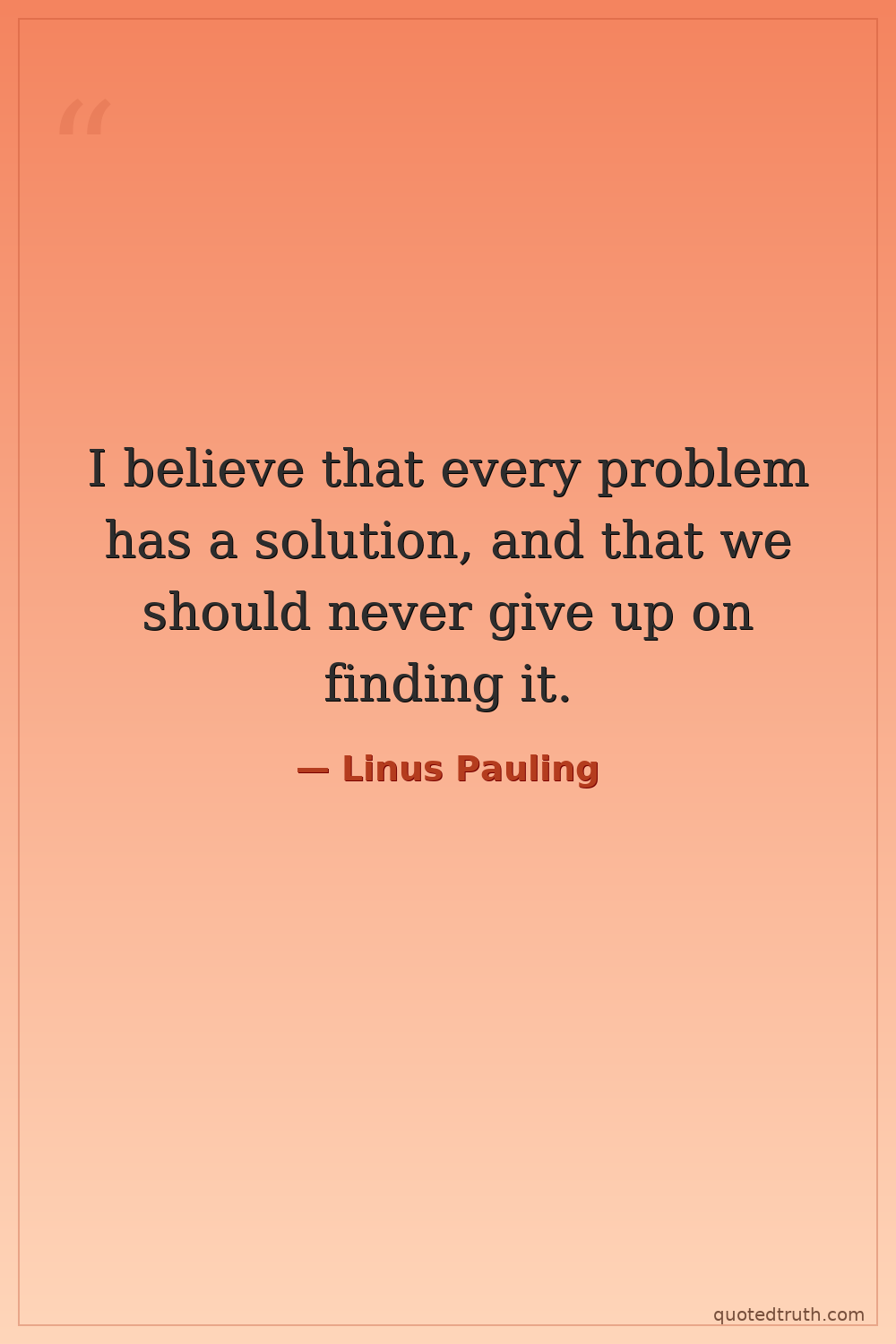 I believe that every problem has a solution, and that we should never give up on finding it.