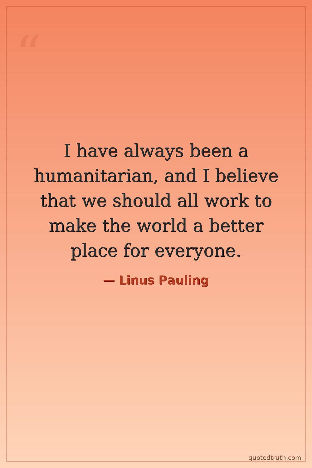 I have always been a humanitarian, and I believe that we should all work to make the world a better place for everyone.