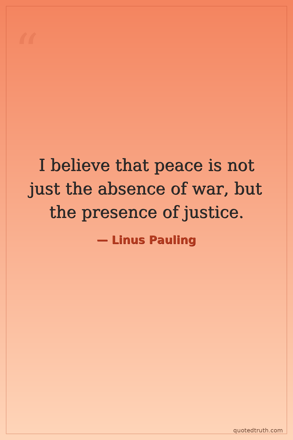 I believe that peace is not just the absence of war, but the presence of justice.