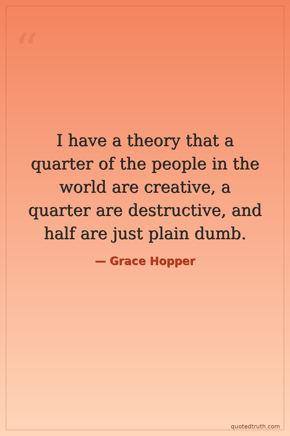 I have a theory that a quarter of the people in the world are creative, a quarter are destructive, and half are just plain dumb.