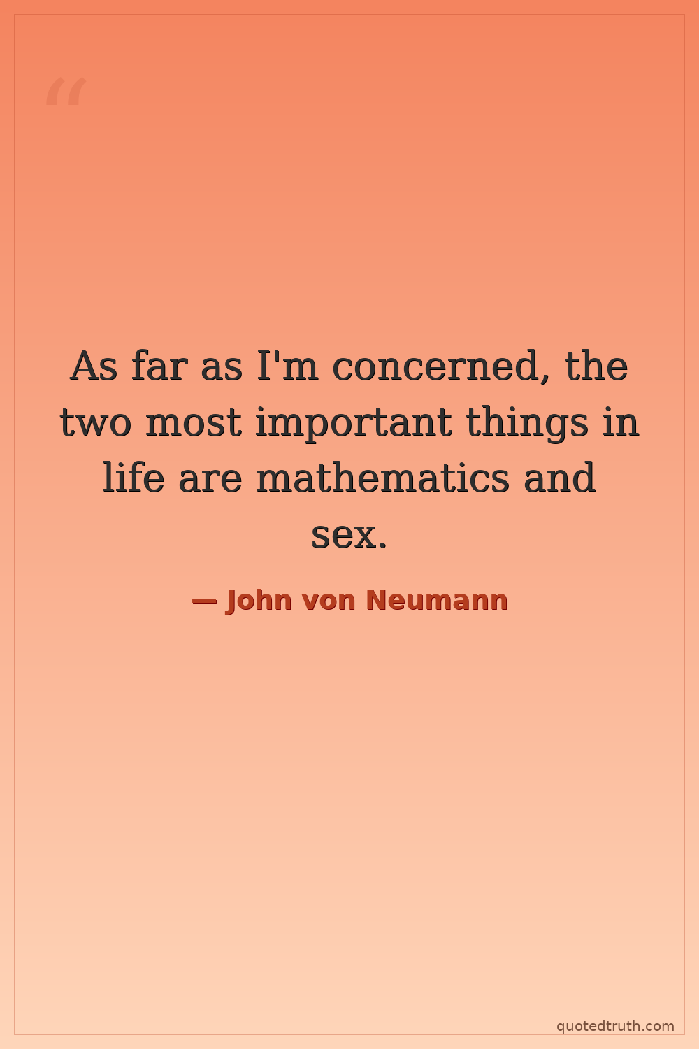 As far as I'm concerned, the two most important things in life are mathematics and sex.
