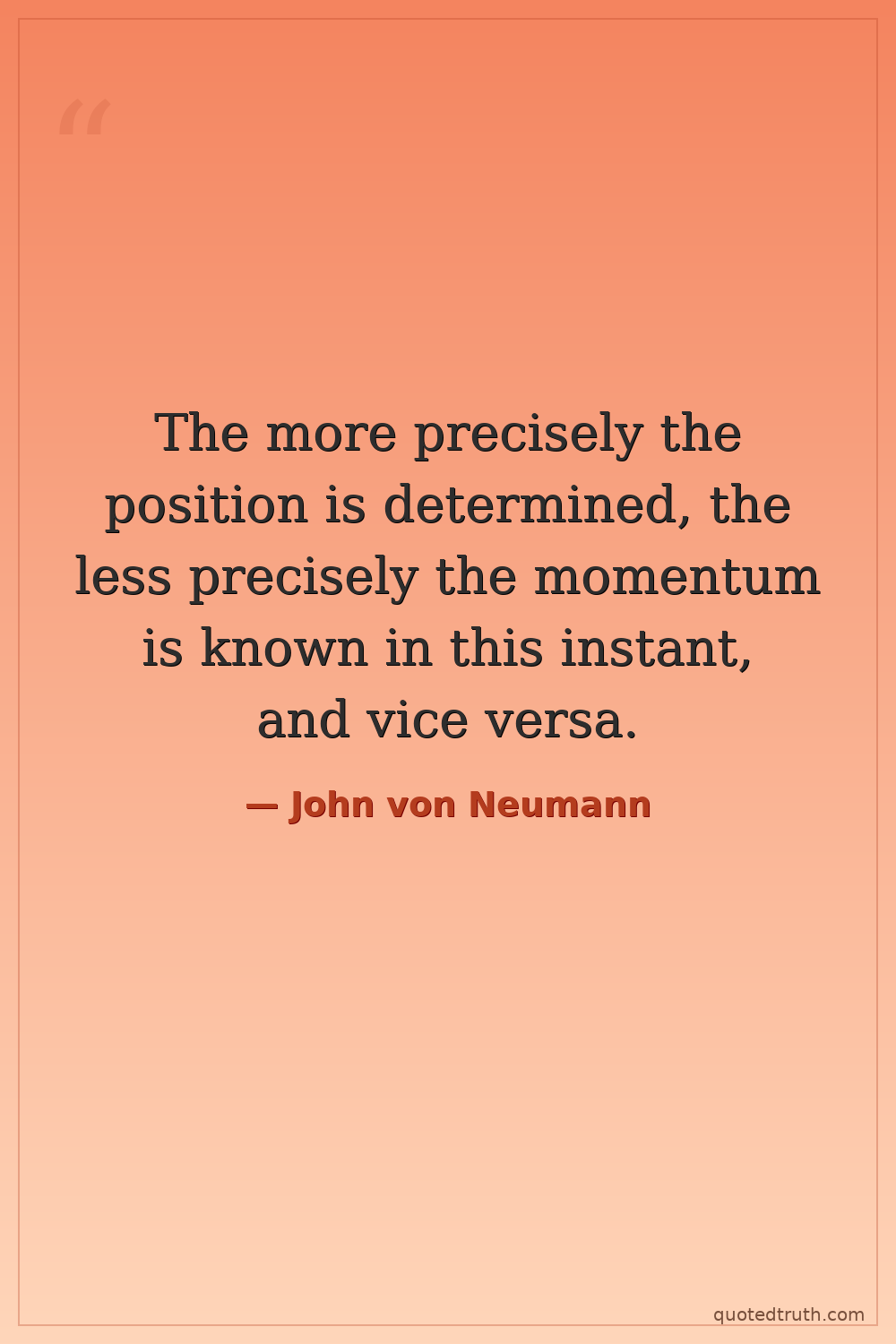 The more precisely the position is determined, the less precisely the momentum is known in this instant, and vice versa.