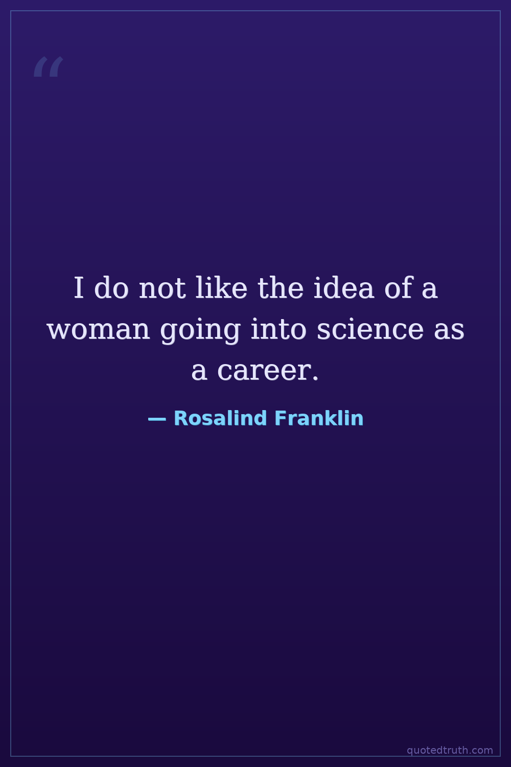 I do not like the idea of a woman going into science as a career.