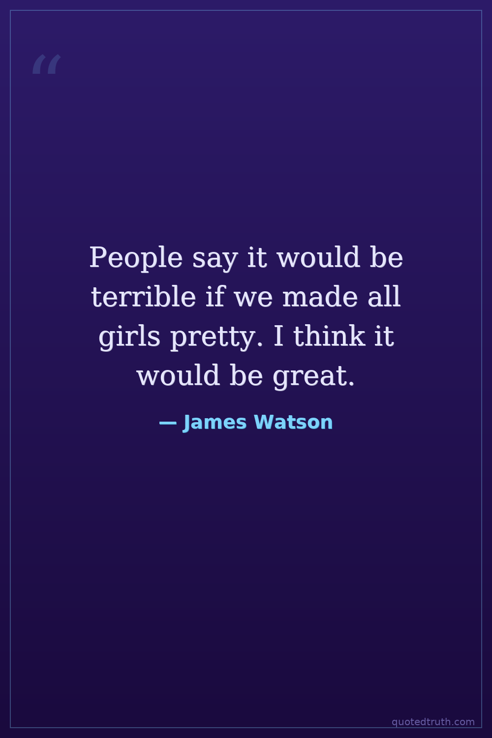 People say it would be terrible if we made all girls pretty. I think it would be great.