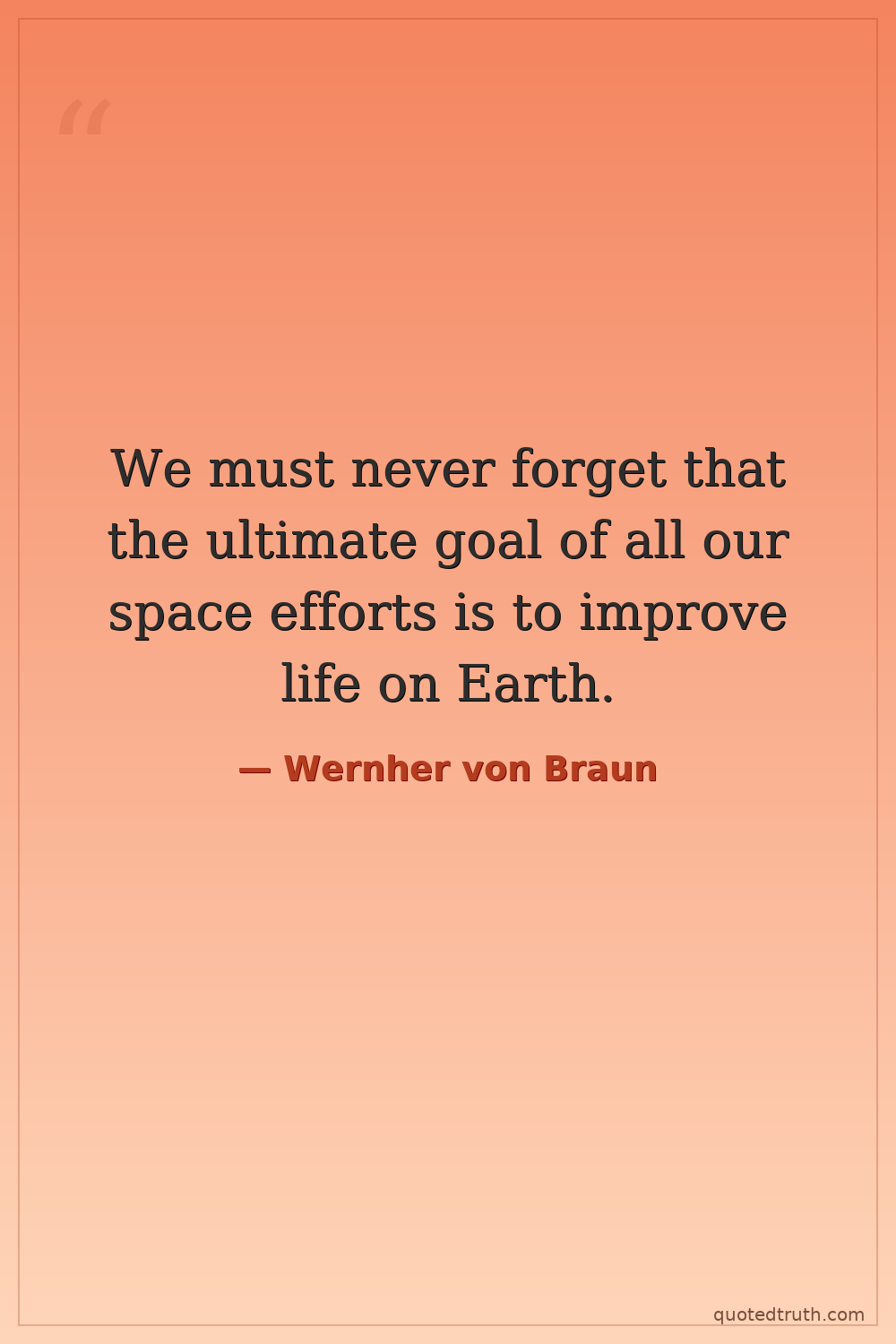 We must never forget that the ultimate goal of all our space efforts is to improve life on Earth.