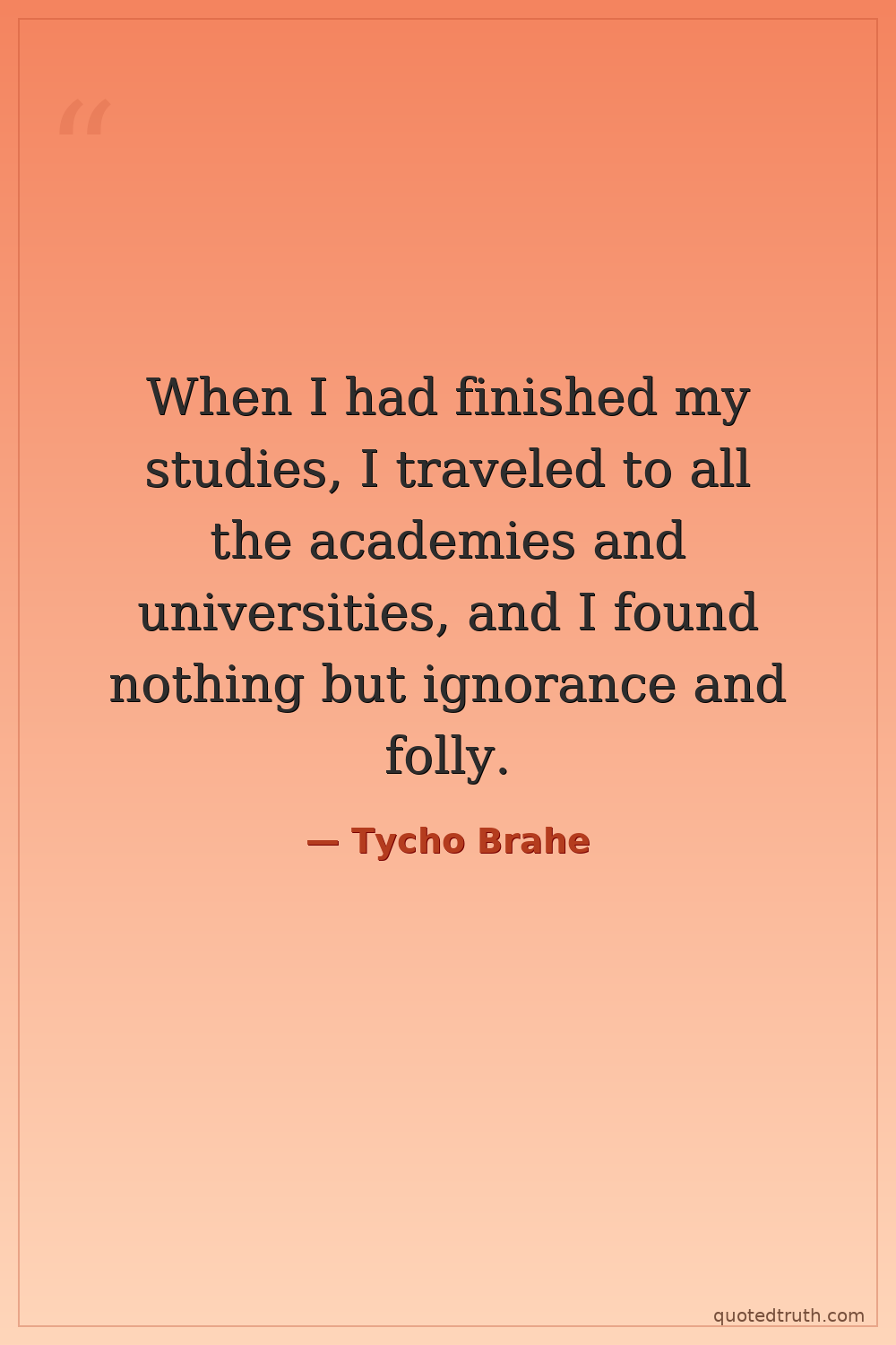 When I had finished my studies, I traveled to all the academies and universities, and I found nothing but ignorance and folly.