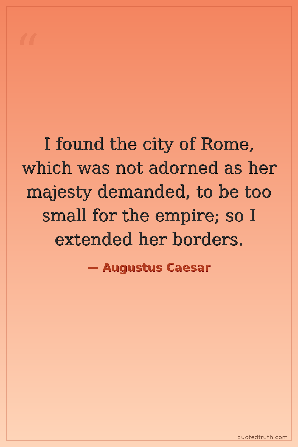I found the city of Rome, which was not adorned as her majesty demanded, to be too small for the empire; so I extended her borders.