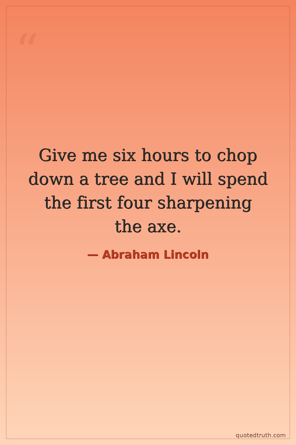 Give me six hours to chop down a tree and I will spend the first four sharpening the axe.