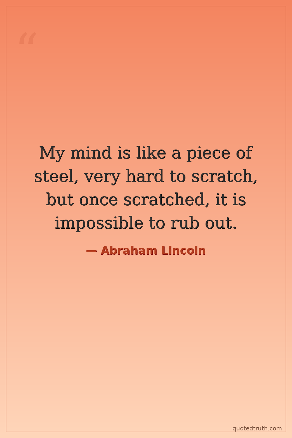My mind is like a piece of steel, very hard to scratch, but once scratched, it is impossible to rub out.