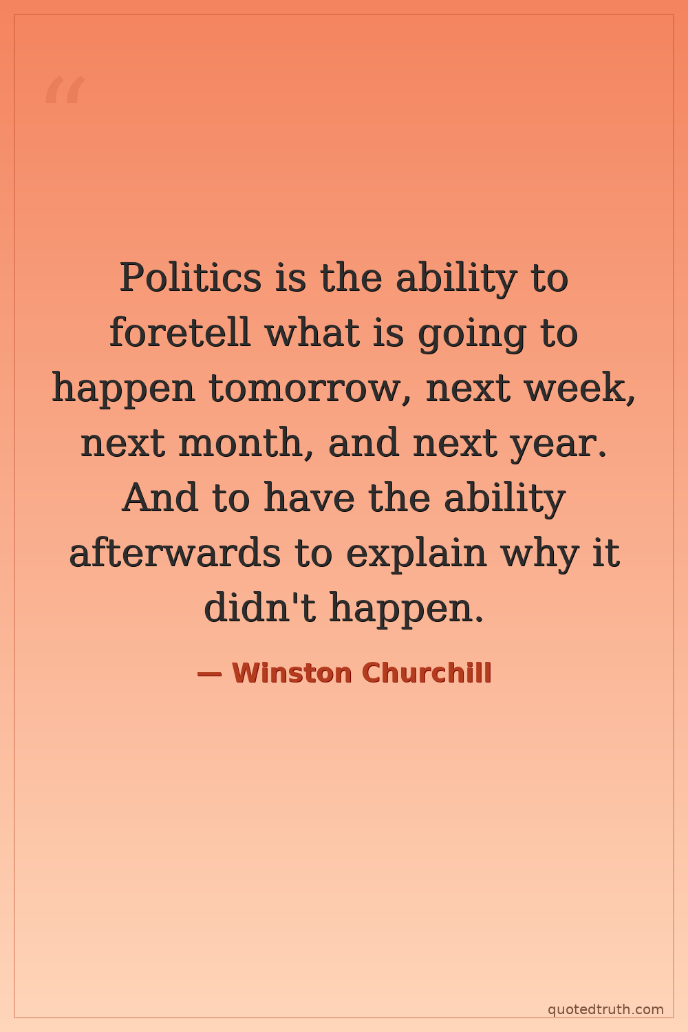 Politics is the ability to foretell what is going to happen tomorrow, next week, next month, and next year. And to have the ability afterwards to explain why it didn't happen.