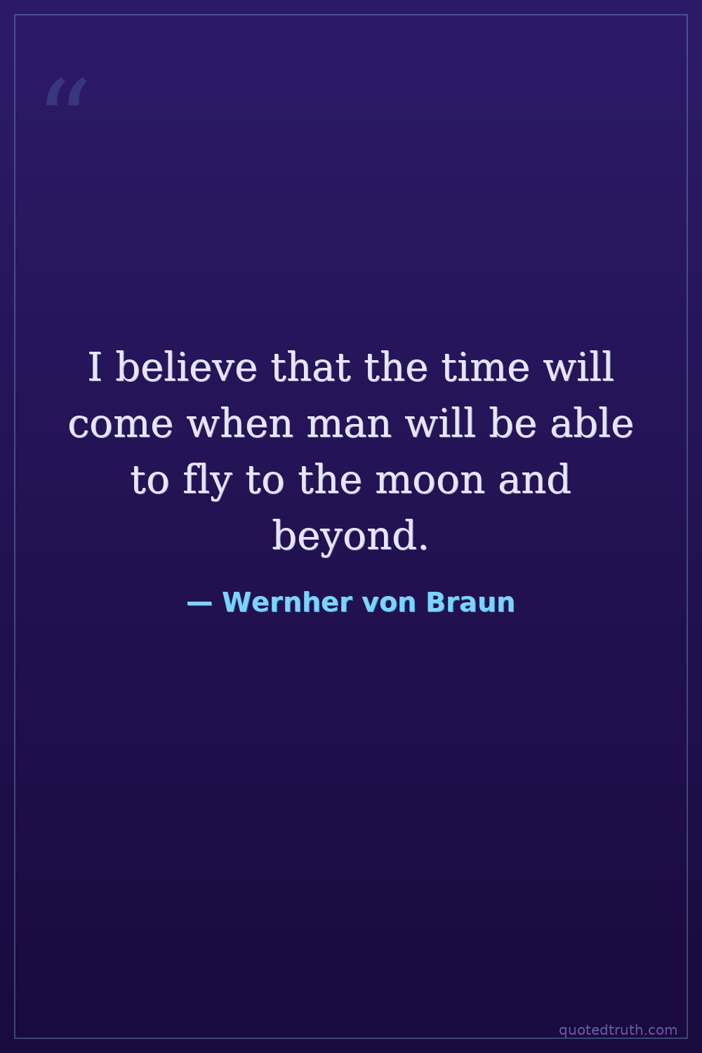I believe that the time will come when man will be able to fly to the moon and beyond.