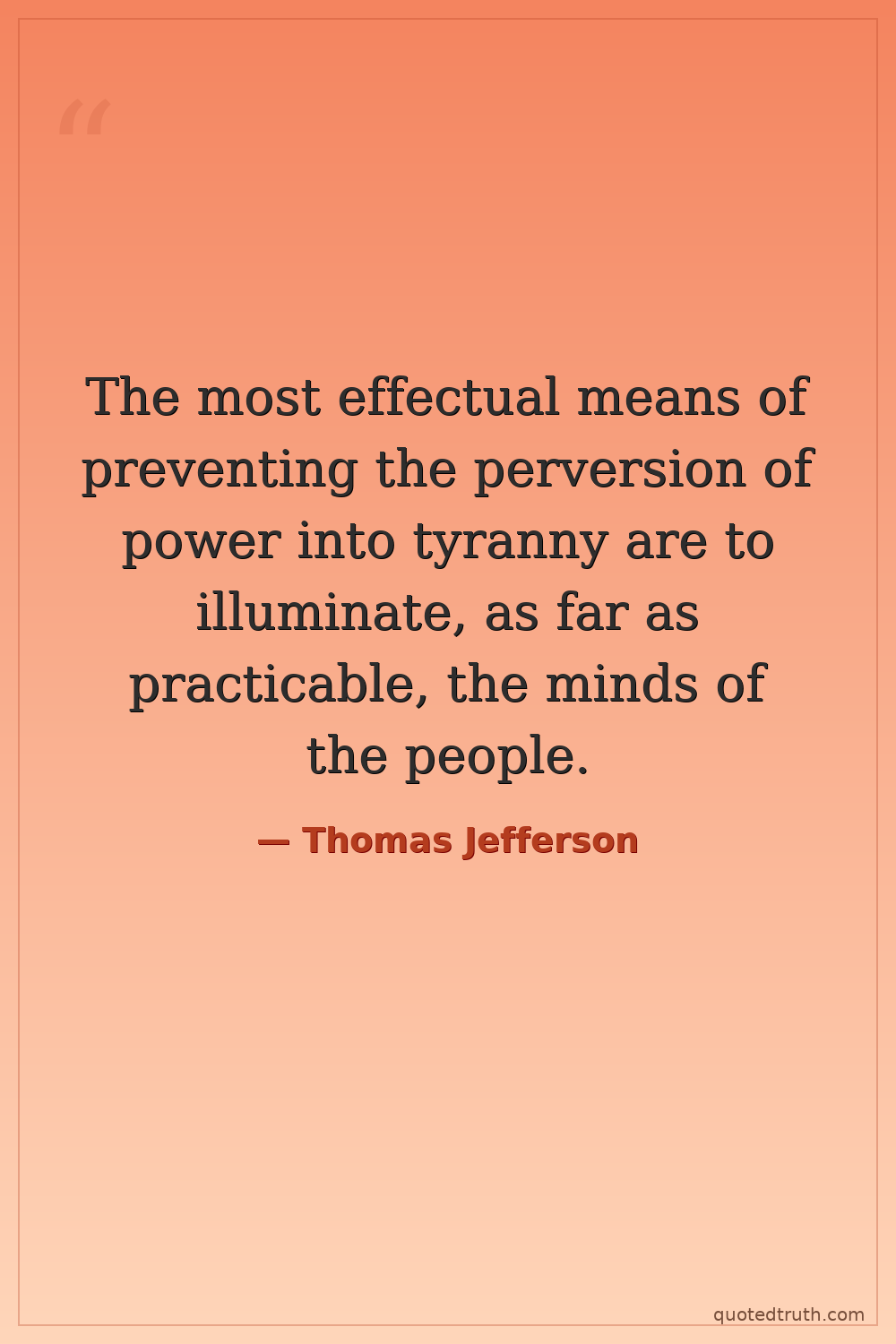 The most effectual means of preventing the perversion of power into tyranny are to illuminate, as far as practicable, the minds of the people.