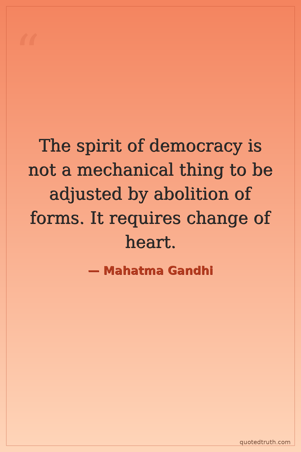 The spirit of democracy is not a mechanical thing to be adjusted by abolition of forms. It requires change of heart.