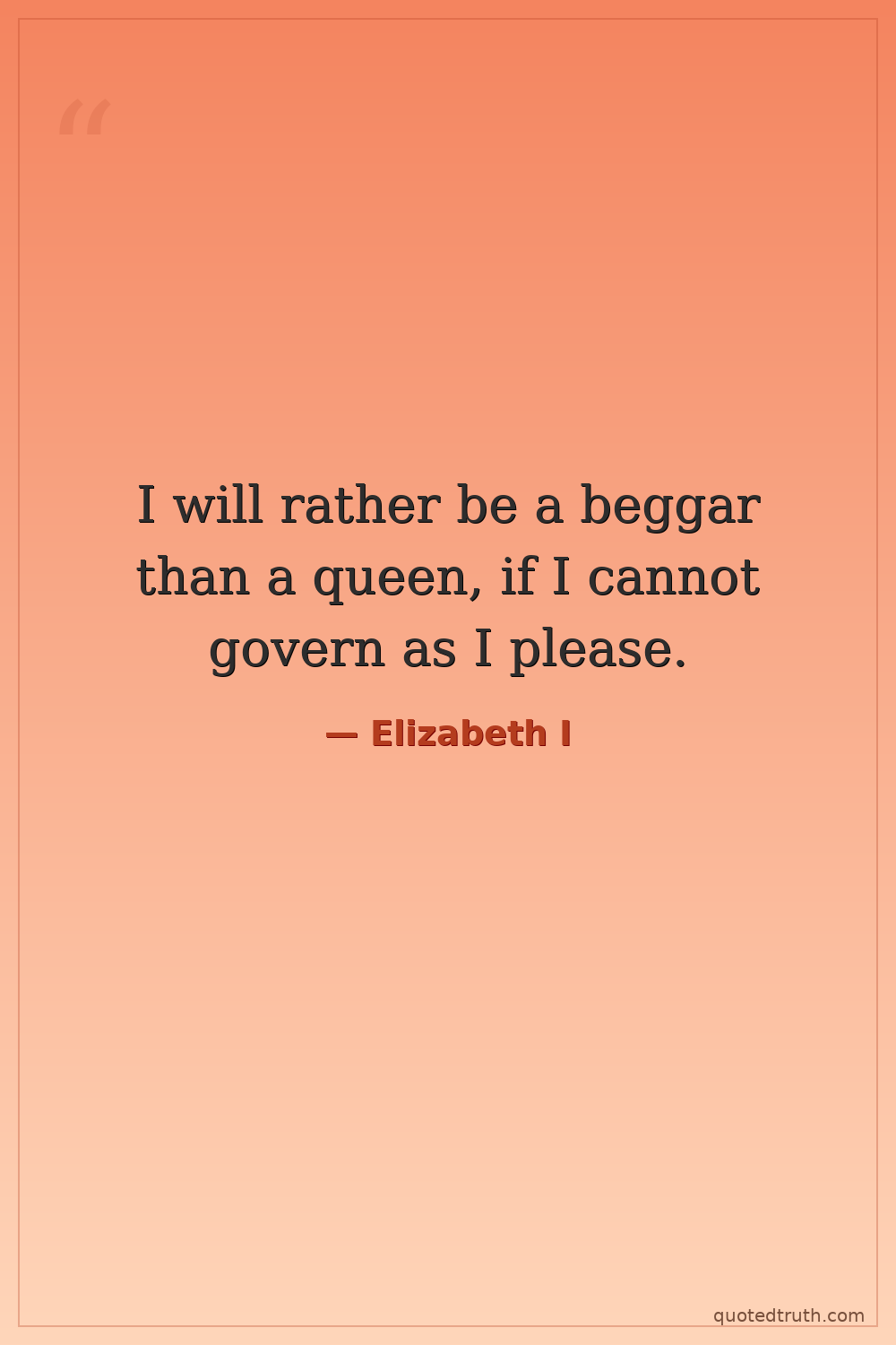 I will rather be a beggar than a queen, if I cannot govern as I please.