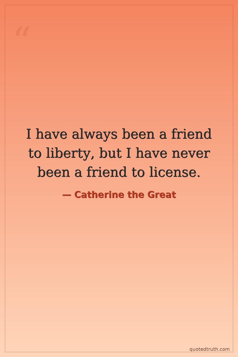 I have always been a friend to liberty, but I have never been a friend to license.