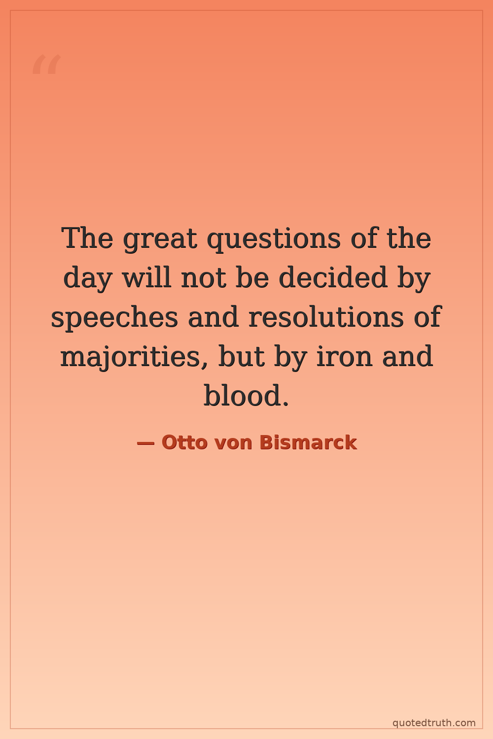 The great questions of the day will not be decided by speeches and resolutions of majorities, but by iron and blood.