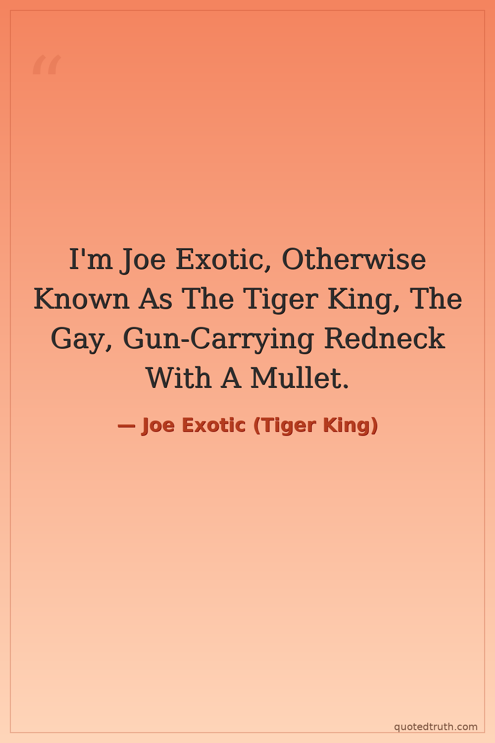 I'm Joe Exotic, Otherwise Known As The Tiger King, The Gay, Gun-Carrying Redneck With A Mullet.