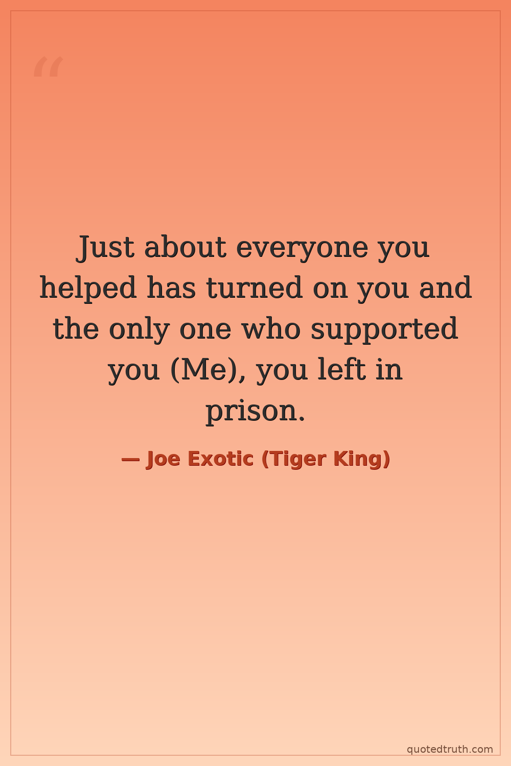 Just about everyone you helped has turned on you and the only one who supported you (Me), you left in prison.