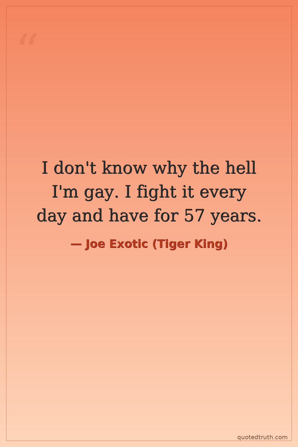 I don't know why the hell I'm gay. I fight it every day and have for 57 years.