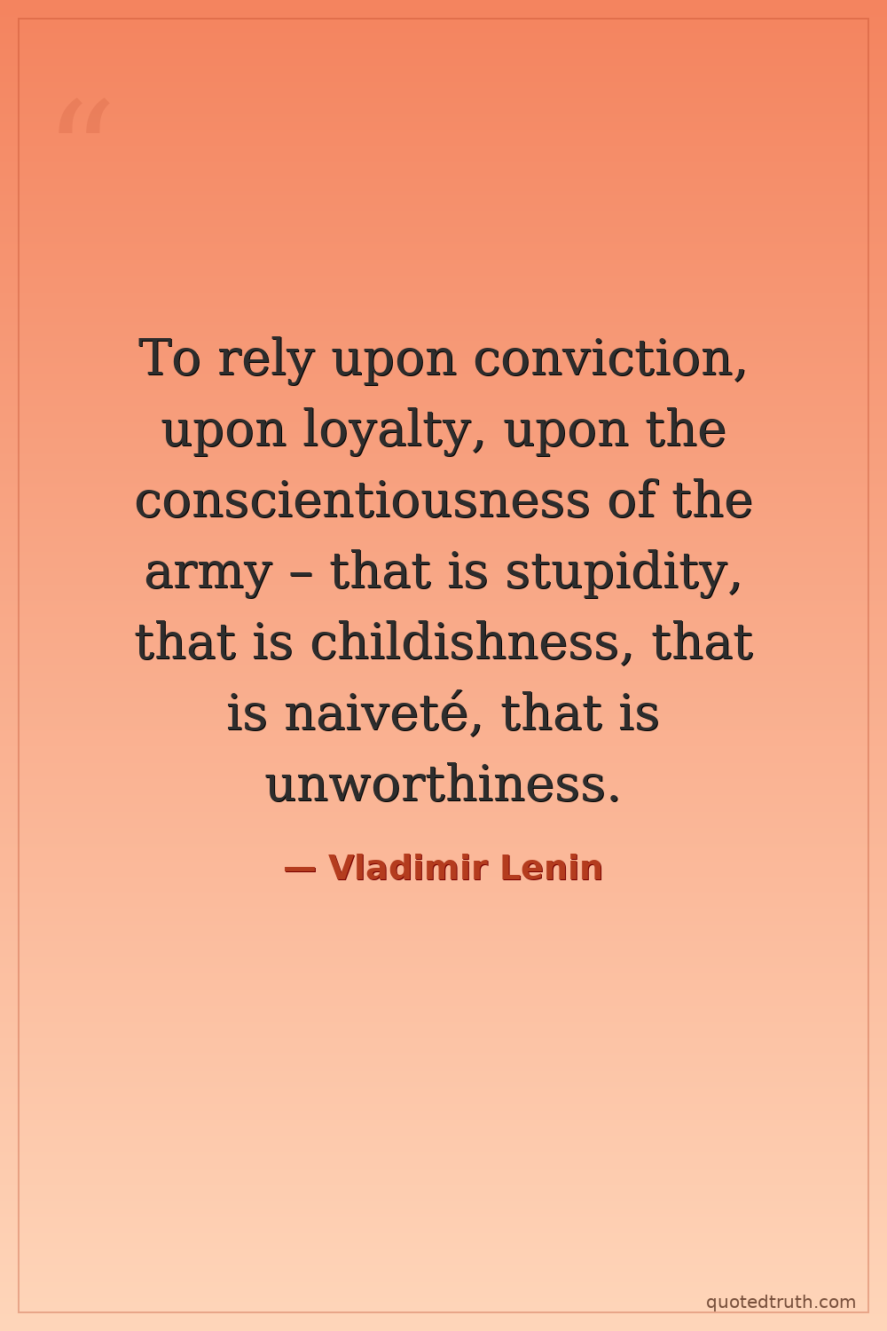 To rely upon conviction, upon loyalty, upon the conscientiousness of the army – that is stupidity, that is childishness, that is naiveté, that is unworthiness.