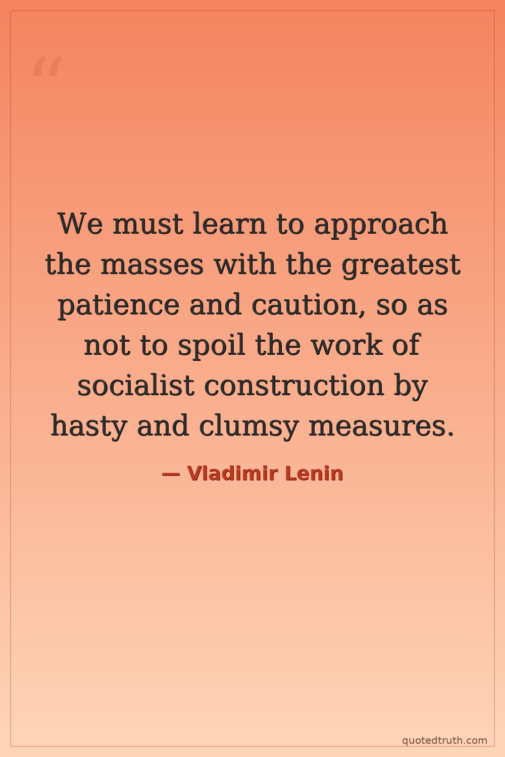 We must learn to approach the masses with the greatest patience and caution, so as not to spoil the work of socialist construction by hasty and clumsy measures.